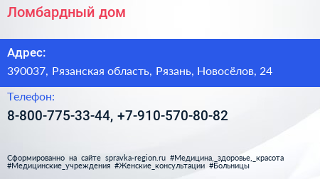 Ломбардный дом по адресу 390037, Рязанская область, Рязань, Новосёлов, 24 в дальнейшем Организация, размещена в следующих категориях: