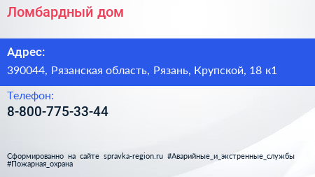Ломбардный дом по адресу 390044, Рязанская область, Рязань, Крупской, 18 к1 в дальнейшем Организация, размещена в следующих категориях: