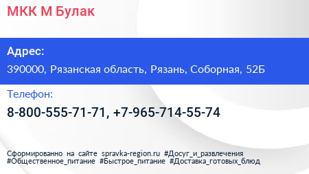 МКК М Булак по адресу 390000, Рязанская область, Рязань, Соборная, 52Б в дальнейшем Организация, размещена в следующих категориях: