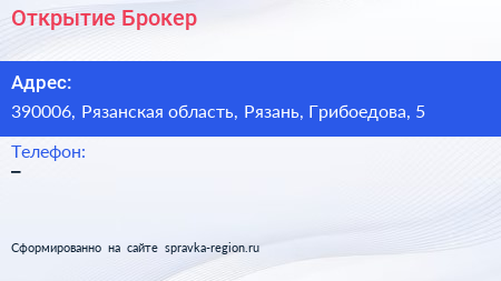 Открытие Брокер по адресу 390006, Рязанская область, Рязань, Грибоедова, 5 в дальнейшем Организация, размещена в следующих категориях: