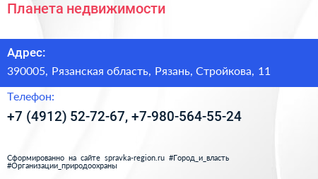 Планета недвижимости по адресу 390005, Рязанская область, Рязань, Стройкова, 11 в дальнейшем Организация, размещена в следующих категориях: