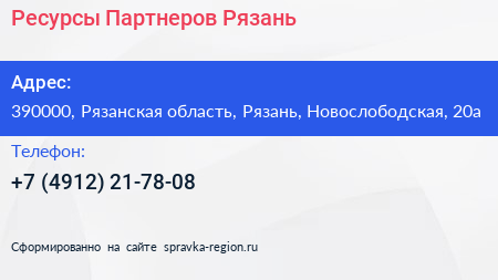 Ресурсы Партнеров Рязань по адресу 390000, Рязанская область, Рязань, Новослободская, 20а в дальнейшем Организация, размещена в следующих категориях: