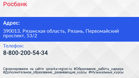 Росбанк по адресу 390013, Рязанская область, Рязань, Первомайский проспект, 53/2 в дальнейшем Организация, размещена в следующих категориях: