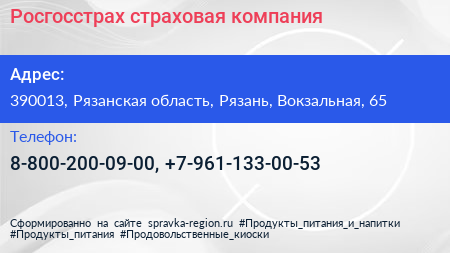 Росгосстрах, страховая компания по адресу 390013, Рязанская область, Рязань, Вокзальная, 65 в дальнейшем Организация, размещена в следующих категориях: