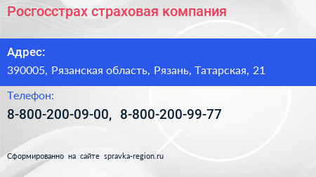 Росгосстрах, страховая компания по адресу 390005, Рязанская область, Рязань, Татарская, 21 в дальнейшем Организация, размещена в следующих категориях: