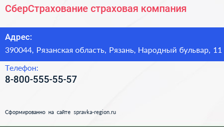 СберСтрахование, страховая компания по адресу 390044, Рязанская область, Рязань, Народный бульвар, 11 в дальнейшем Организация, размещена в следующих категориях: