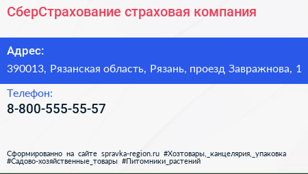 СберСтрахование, страховая компания по адресу 390013, Рязанская область, Рязань, проезд Завражнова, 1 в дальнейшем Организация, размещена в следующих категориях: