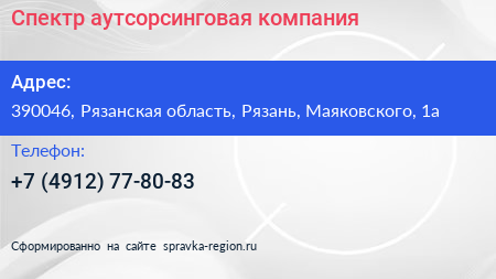 Спектр, аутсорсинговая компания по адресу 390046, Рязанская область, Рязань, Маяковского, 1а в дальнейшем Организация, размещена в следующих категориях: