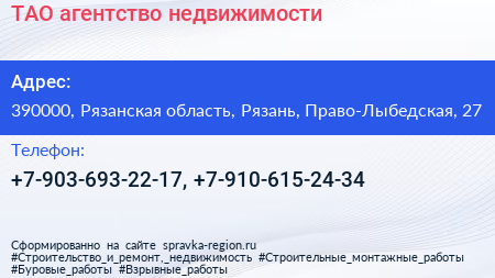 ТАО, агентство недвижимости по адресу 390000, Рязанская область, Рязань, Право-Лыбедская, 27 в дальнейшем Организация, размещена в следующих категориях: