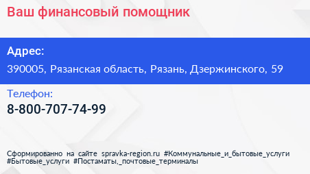 Ваш финансовый помощник по адресу 390005, Рязанская область, Рязань, Дзержинского, 59 в дальнейшем Организация, размещена в следующих категориях: