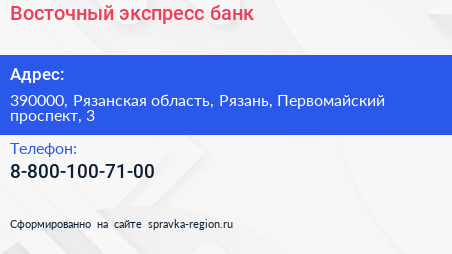 Восточный экспресс банк по адресу 390000, Рязанская область, Рязань, Первомайский проспект, 3 в дальнейшем Организация, размещена в следующих категориях: