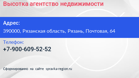 Высотка, агентство недвижимости по адресу 390000, Рязанская область, Рязань, Почтовая, 64 в дальнейшем Организация, размещена в следующих категориях: