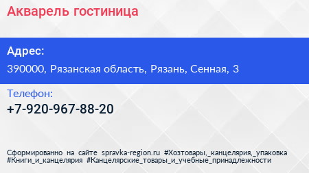 Акварель, гостиница по адресу 390000, Рязанская область, Рязань, Сенная, 3 в дальнейшем Организация, размещена в следующих категориях: