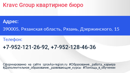 Kravc Group, квартирное бюро по адресу 390005, Рязанская область, Рязань, Дзержинского, 15 в дальнейшем Организация, размещена в следующих категориях: