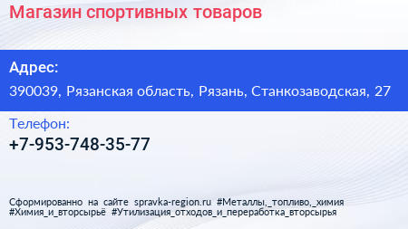 Магазин спортивных товаров по адресу 390039, Рязанская область, Рязань, Станкозаводская, 27 в дальнейшем Организация, размещена в следующих категориях: