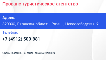 Прованс, туристическое агентство по адресу 390000, Рязанская область, Рязань, Новослободская, 9 в дальнейшем Организация, размещена в следующих категориях: