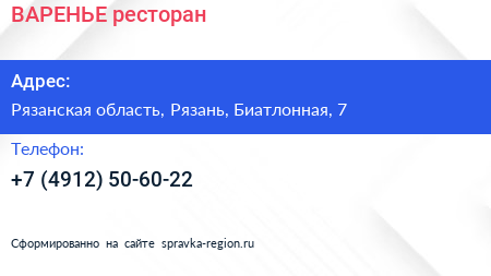 ВАРЕНЬЕ, ресторан по адресу Рязанская область, Рязань, Биатлонная, 7 в дальнейшем Организация, размещена в следующих категориях: