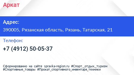 Аркат по адресу 390005, Рязанская область, Рязань, Татарская, 21 в дальнейшем Организация, размещена в следующих категориях: