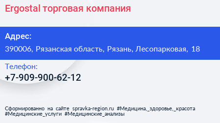 Ergostal, торговая компания по адресу 390006, Рязанская область, Рязань, Лесопарковая, 18 в дальнейшем Организация, размещена в следующих категориях: