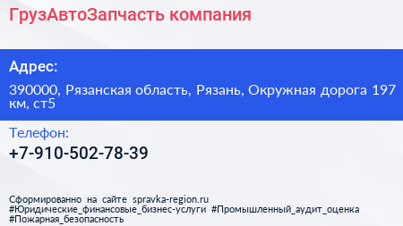 ГрузАвтоЗапчасть, компания по адресу 390000, Рязанская область, Рязань, Окружная дорога 197 км, ст5 в дальнейшем Организация, размещена в следующих категориях:
