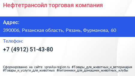 Нефтетрансойл, торговая компания по адресу 390006, Рязанская область, Рязань, Фурманова, 60 в дальнейшем Организация, размещена в следующих категориях: