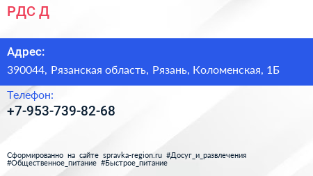 РДС-Д по адресу 390044, Рязанская область, Рязань, Коломенская, 1Б в дальнейшем Организация, размещена в следующих категориях: