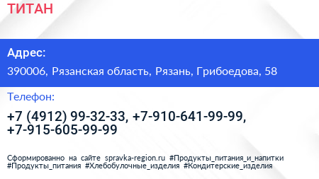 ТИТАН по адресу 390006, Рязанская область, Рязань, Грибоедова, 58 в дальнейшем Организация, размещена в следующих категориях: