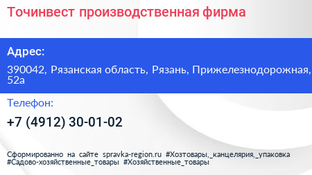 Точинвест, производственная фирма по адресу 390042, Рязанская область, Рязань, Прижелезнодорожная, 52а в дальнейшем Организация, размещена в следующих категориях: