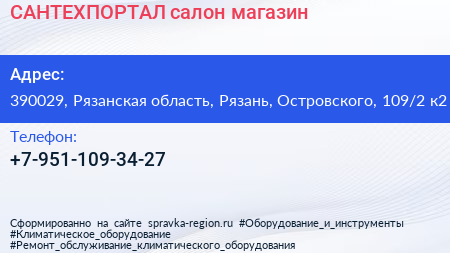 САНТЕХПОРТАЛ, салон-магазин по адресу 390029, Рязанская область, Рязань, Островского, 109/2 к2 в дальнейшем Организация, размещена в следующих категориях: