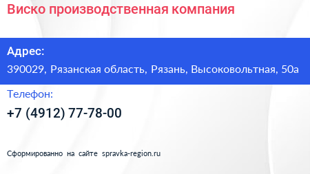 Виско, производственная компания по адресу 390029, Рязанская область, Рязань, Высоковольтная, 50а в дальнейшем Организация, размещена в следующих категориях: