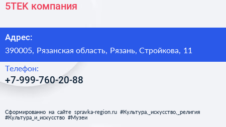5TEK, компания по адресу 390005, Рязанская область, Рязань, Стройкова, 11 в дальнейшем Организация, размещена в следующих категориях: