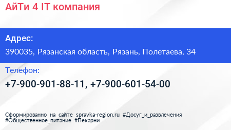 АйТи-4, IT-компания по адресу 390035, Рязанская область, Рязань, Полетаева, 34 в дальнейшем Организация, размещена в следующих категориях: