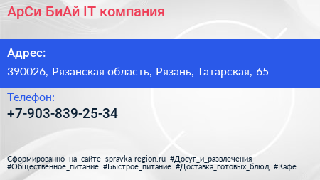 АрСи БиАй, IT-компания по адресу 390026, Рязанская область, Рязань, Татарская, 65 в дальнейшем Организация, размещена в следующих категориях: