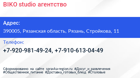 BIKO studio, агентство по адресу 390005, Рязанская область, Рязань, Стройкова, 11 в дальнейшем Организация, размещена в следующих категориях: