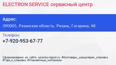 ELECTRON SERVICE, сервисный центр по адресу 390005, Рязанская область, Рязань, Гагарина, 48 в дальнейшем Организация, размещена в следующих категориях: