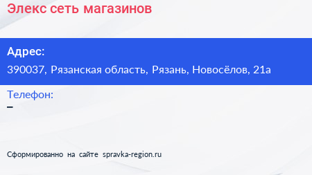 Элекс, сеть магазинов по адресу 390037, Рязанская область, Рязань, Новосёлов, 21а в дальнейшем Организация, размещена в следующих категориях: