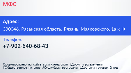 МФС по адресу 390046, Рязанская область, Рязань, Маяковского, 1а к Ф в дальнейшем Организация, размещена в следующих категориях: