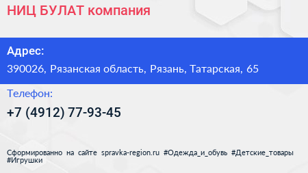 НИЦ БУЛАТ, компания по адресу 390026, Рязанская область, Рязань, Татарская, 65 в дальнейшем Организация, размещена в следующих категориях: