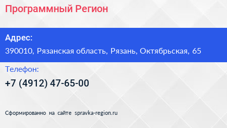 Программный Регион по адресу 390010, Рязанская область, Рязань, Октябрьская, 65 в дальнейшем Организация, размещена в следующих категориях: