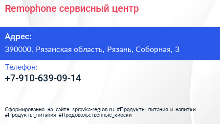 Remophone, сервисный центр по адресу 390000, Рязанская область, Рязань, Соборная, 3 в дальнейшем Организация, размещена в следующих категориях: