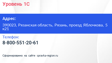 Уровень 1С по адресу 390023, Рязанская область, Рязань, проезд Яблочкова, 5 к21 в дальнейшем Организация, размещена в следующих категориях: