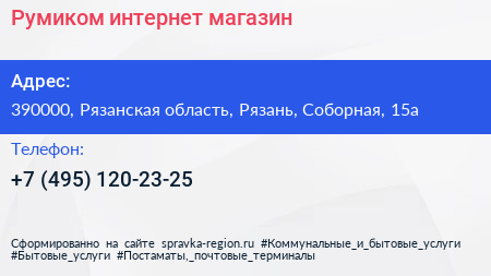 Румиком, интернет-магазин по адресу 390000, Рязанская область, Рязань, Соборная, 15а в дальнейшем Организация, размещена в следующих категориях: