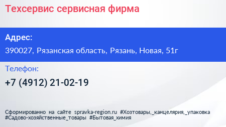 Техсервис, сервисная фирма по адресу 390027, Рязанская область, Рязань, Новая, 51г в дальнейшем Организация, размещена в следующих категориях: