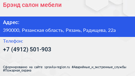 Брэнд, салон мебели по адресу 390000, Рязанская область, Рязань, Радищева, 22а в дальнейшем Организация, размещена в следующих категориях:
