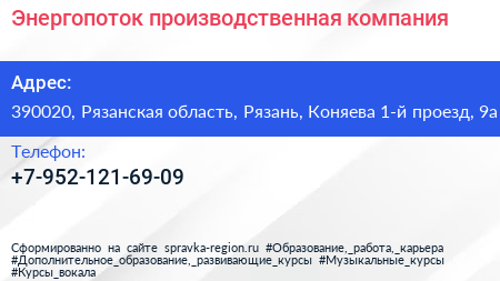 Энергопоток, производственная компания по адресу 390020, Рязанская область, Рязань, Коняева 1-й проезд, 9а в дальнейшем Организация, размещена в следующих категориях: