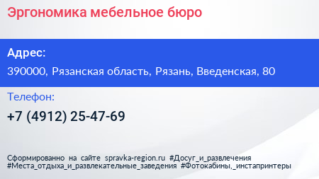 Эргономика, мебельное бюро по адресу 390000, Рязанская область, Рязань, Введенская, 80 в дальнейшем Организация, размещена в следующих категориях: