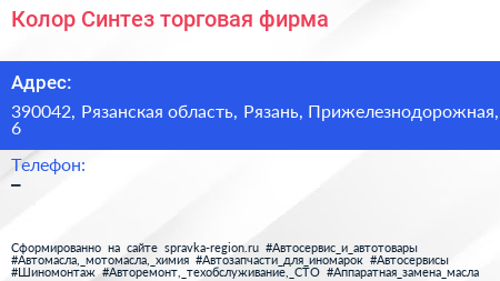 Колор-Синтез, торговая фирма по адресу 390042, Рязанская область, Рязань, Прижелезнодорожная, 6 в дальнейшем Организация, размещена в следующих категориях:
