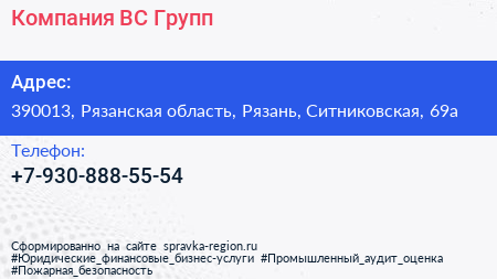 Компания ВС Групп по адресу 390013, Рязанская область, Рязань, Ситниковская, 69а в дальнейшем Организация, размещена в следующих категориях: