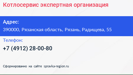 Котлосервис, экспертная организация по адресу 390000, Рязанская область, Рязань, Радищева, 55 в дальнейшем Организация, размещена в следующих категориях: