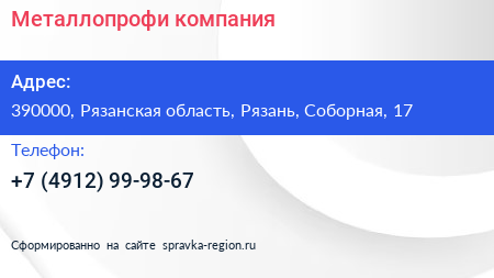 Металлопрофи, компания по адресу 390000, Рязанская область, Рязань, Соборная, 17 в дальнейшем Организация, размещена в следующих категориях: